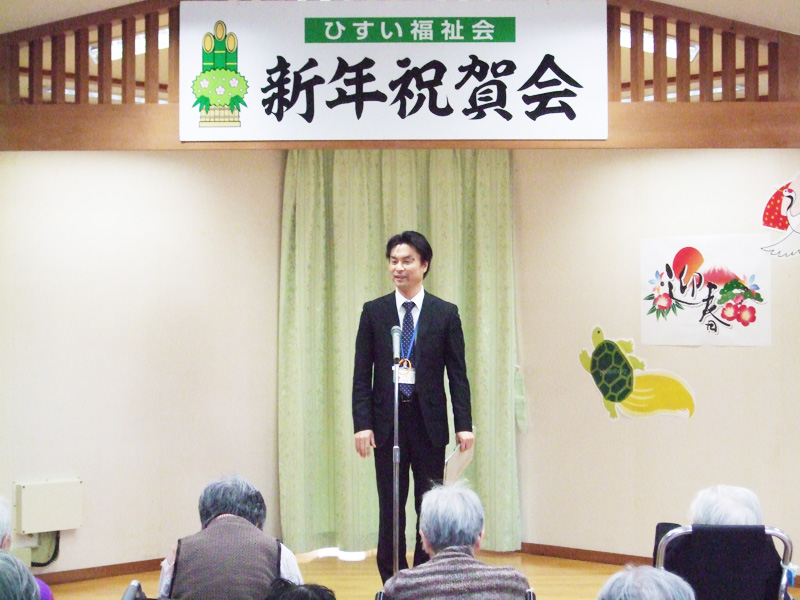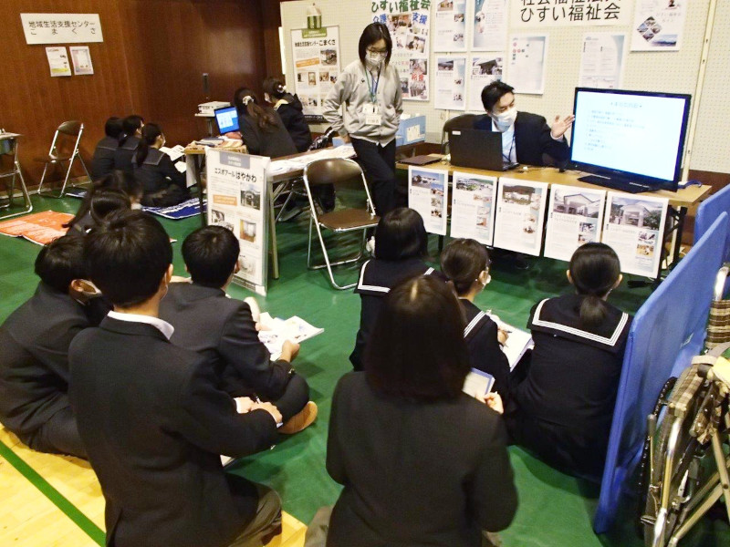 生活相談員が講師となり、ひすい福祉会の紹介や介護について講義を行いました。