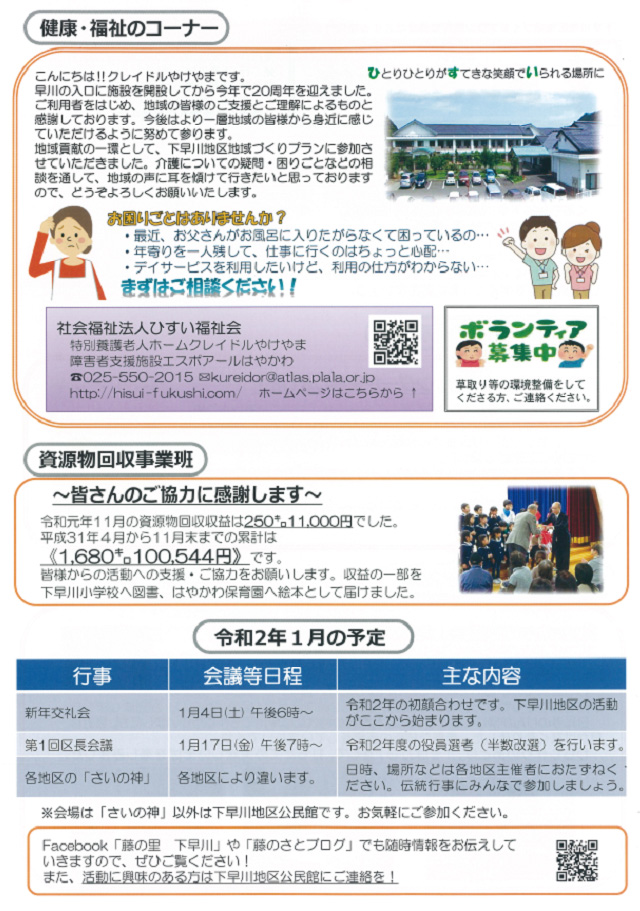 各ボランティア団体をはじめ、中学生の応援を受け、ふくがくちの里は、地域の皆様に支えられていると実感できる今日この頃です。