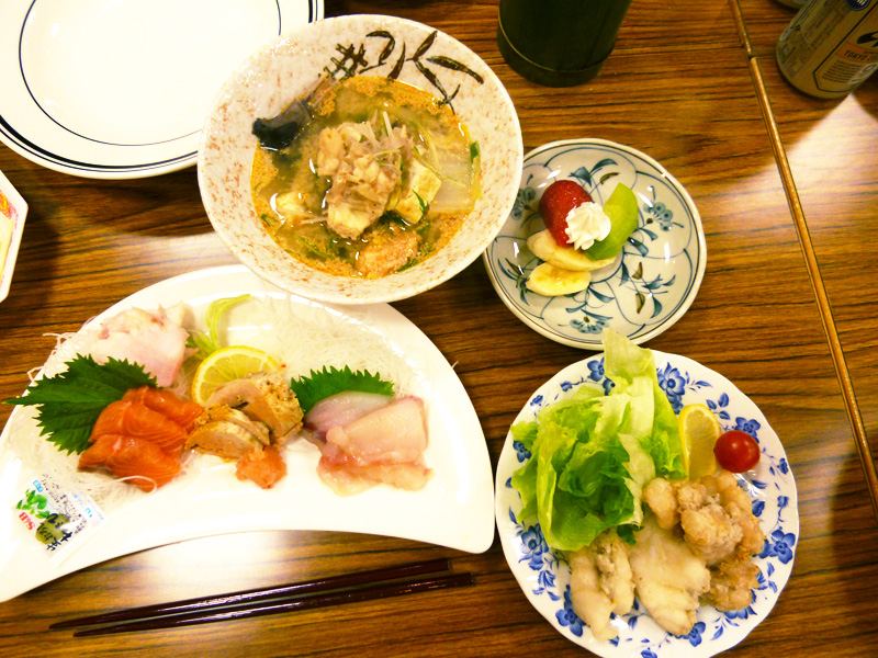 料理はあんこう鍋とあんこうのフルコースです。あんこうの吊るし切りも行ったそうで、それぞれの部位に合わせて、お刺身や唐揚げ、鍋などの調理をお手伝いしました。