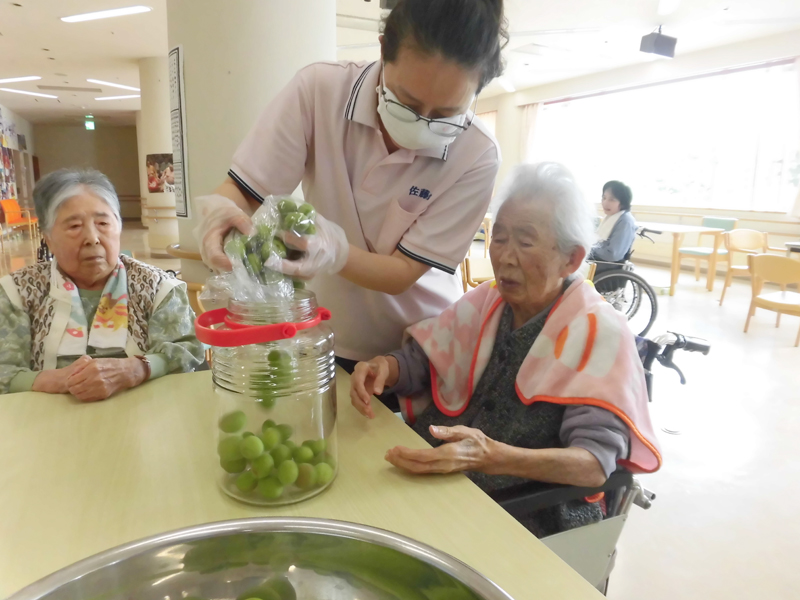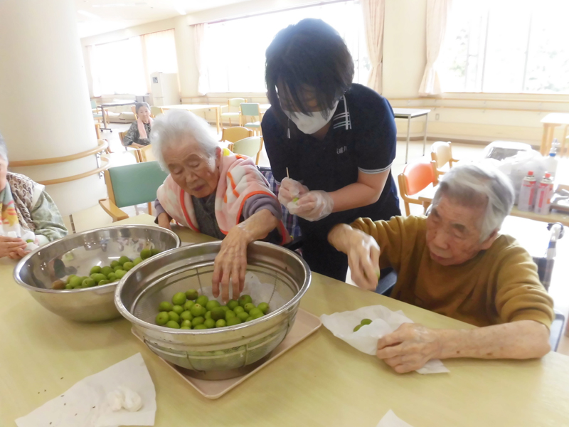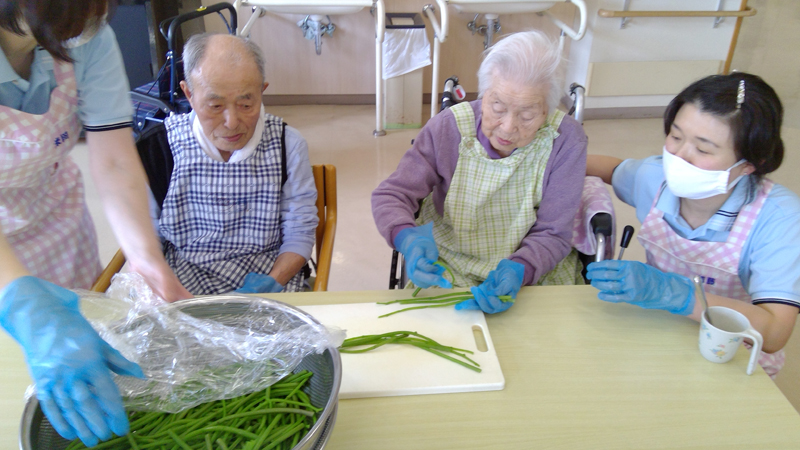 高齢の方は体調の変化がすぐ出る為、調理室の温度管理から料理の加熱温度、残食量の記録と細かいところまで気を配ります。