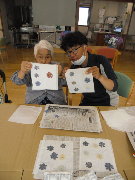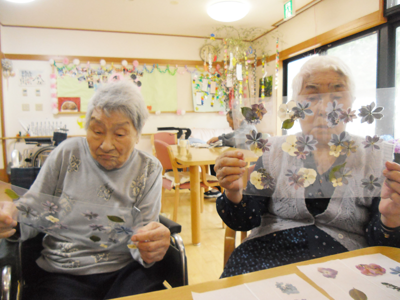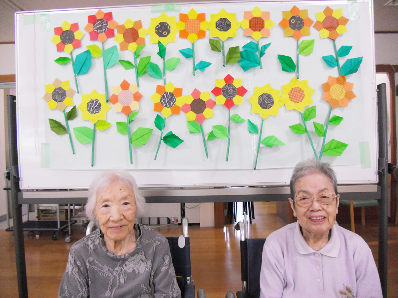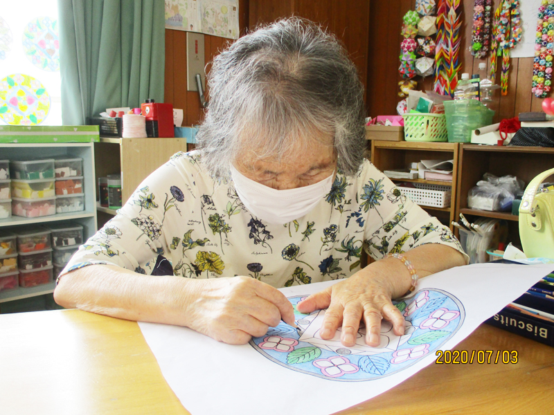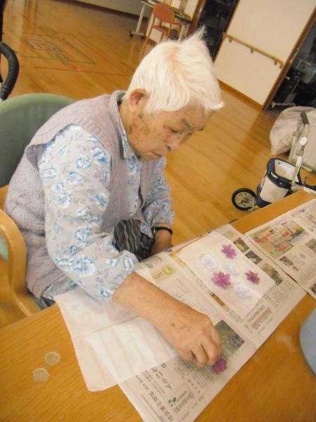 フロアにいらっしゃるご利用者は頭の体操をしたり、作品作りをしたりして過ごしています。