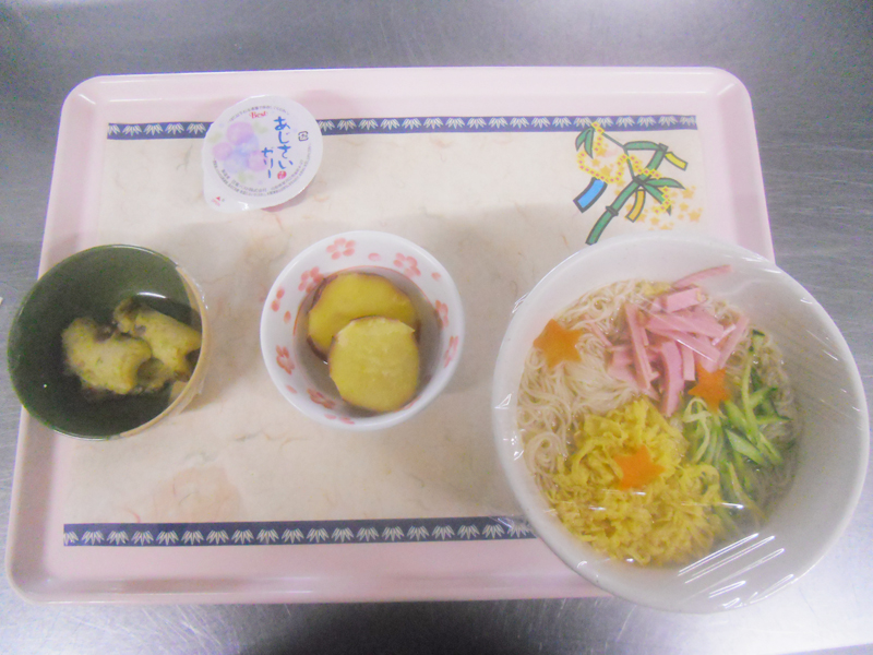 旬の食材を取り入れたメニューを中心に温かいものは温かく、冷たいものは冷たいうちに食事ができるよう日々奮闘しています。一部ですが、メニューを紹介します。