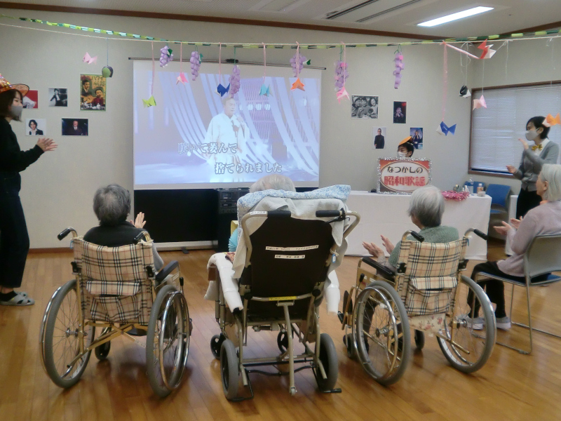 なつかしの昭和歌謡をスクリーンで上映しました。